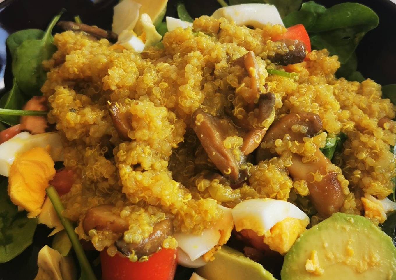 - Couper une tomate, l'œuf dur et rajouter des pousses d'épinards