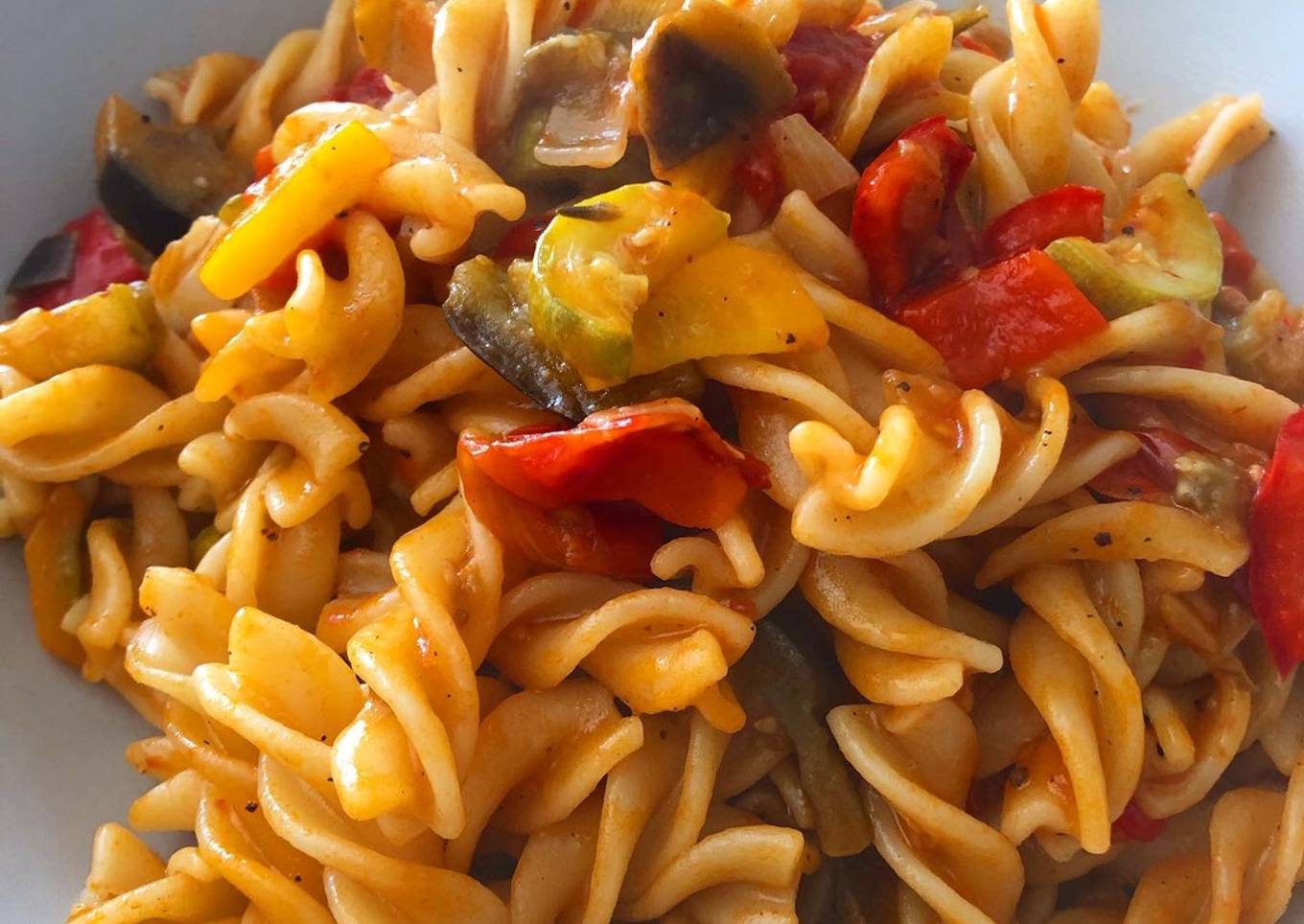 - Couvrez à niveau vos légumes d’eau et une fois que ça commence à monter en ébullition ajoutez les pâtes, mélangez et laissez cuire à couvert sur feu doux.