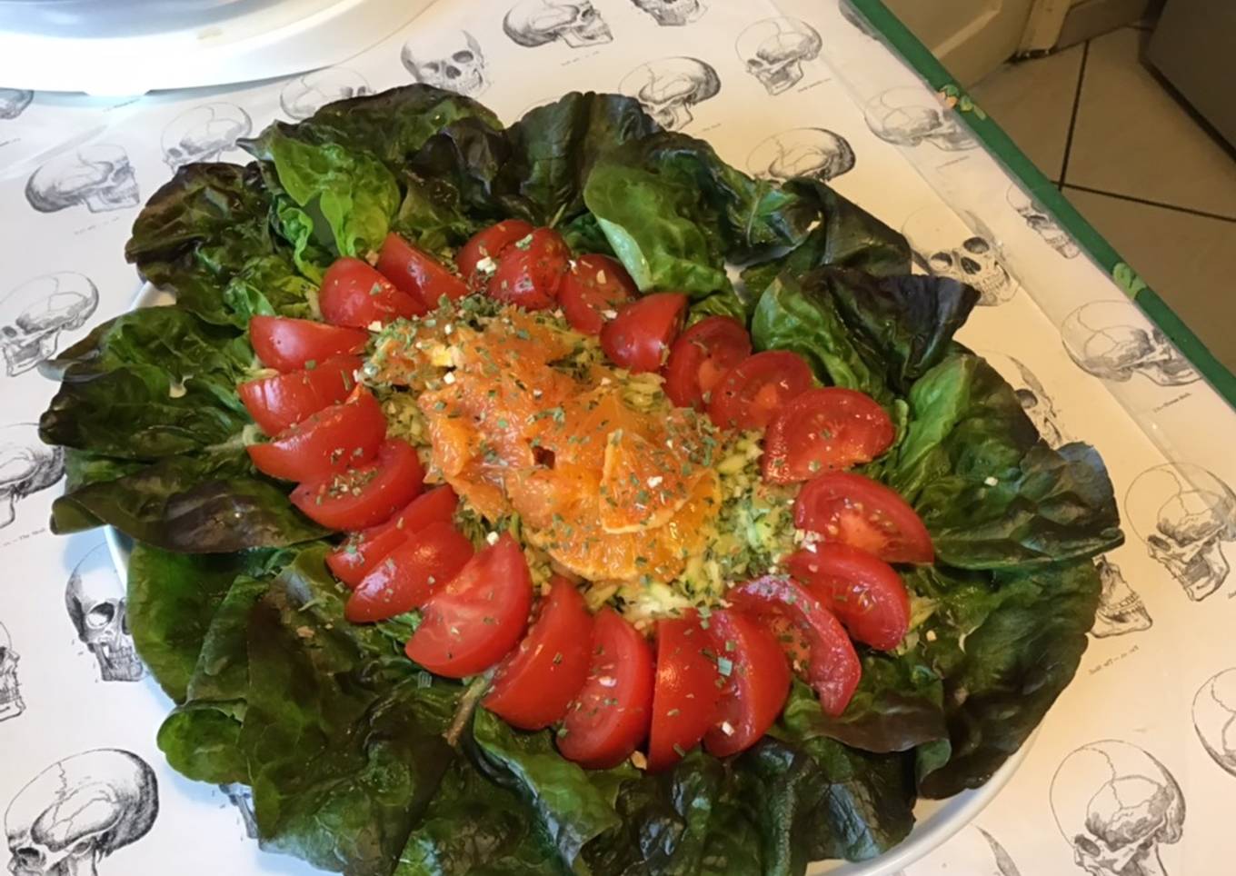 Salade de laitue rougette aux tomates,courgette râpée et orange