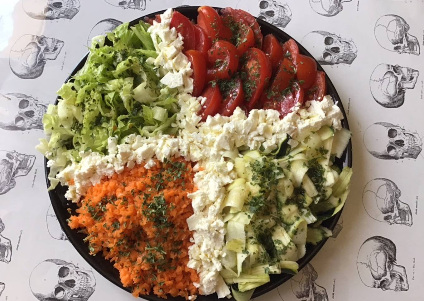 Steps to make to make Salade de tomates carottes romaine et courgettes à la feta